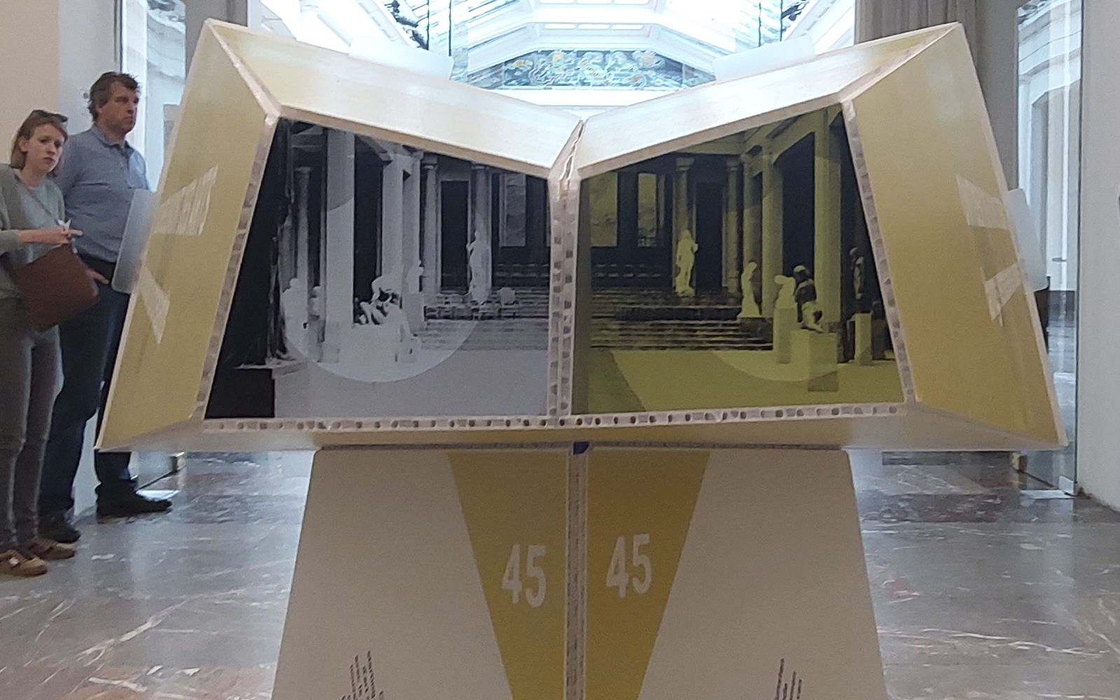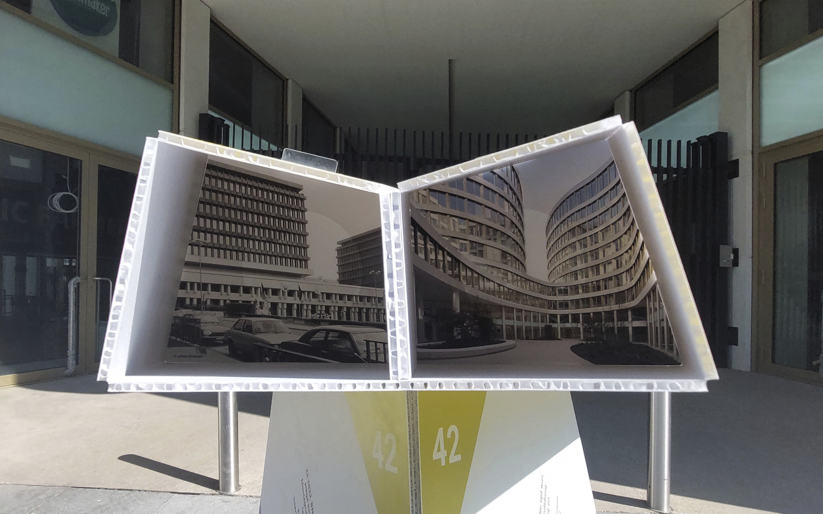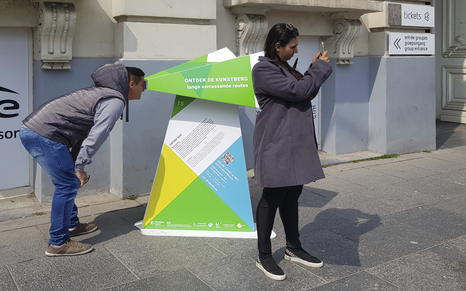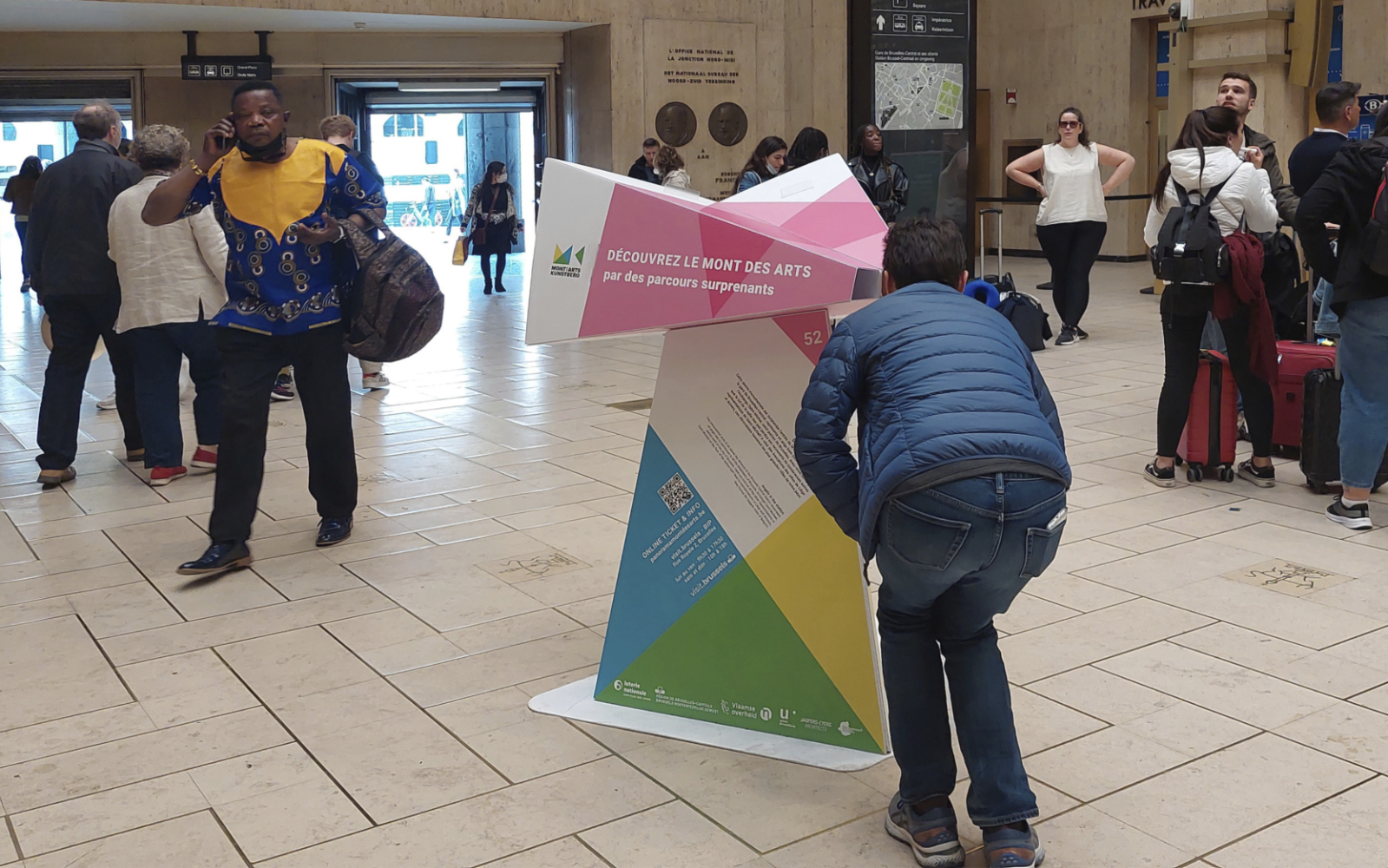 The public outdoor space of the Mont des Arts is the foundation of Panorama Mont des Arts, for which we designed the Panorama Viewer: a blank digitally printed, cut and folded 3D object that not only functions as a festival sign but also introduces visitors to interesting facts in the public outdoor space and the program of the participating institutions. Each viewer features a digitally printed translucent slide with a unique image that discloses itself when you look through the viewer.